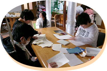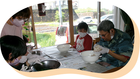 ご利用者の皆様が明るく、楽しく1日を過ごせるようにひとり一人にあった作業訓練や創作活動などを提供しています。